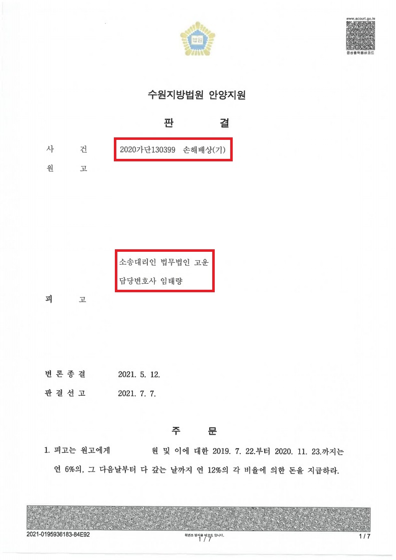 법원 재판부는 법무법인 고운의 주장을 모두 받아들였고, 제품 공급계약을 미 이행한 귀책사유가 상대방 주식회사 B에게 있으며, 제품 미 출고에 따라 발생한 손해를 모두 인정하여 청구금액 전액을 지급 하라는 판결을 하였고, 이는 상대방 주식회사 B의 상소 제기 없이 그대로 확정 되었습니다. 이에 의뢰인 주식회사 A는 소송 결과에 매우 만족하셨습니다.