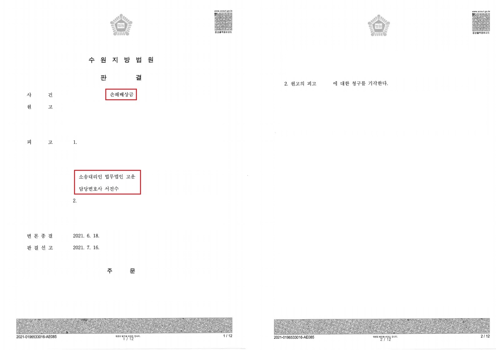 법원 재판부는 법무법인 고운의 주장을 받아들였고, 보증채무 원금 및 지연손해금 관련 선행 판결에 아무런 문제가 없고, 상대방 B씨는 보증인 보호를 위한 특별법에 해당되지도 않는다고 판단하여 손해배상 청구를 기각하였고, 이는 상대방 B씨의 상소제기 없이 사건 확정 되었습니다. 이에 의뢰인 A씨는 소송 결과에 매우 만족하셨습니다.