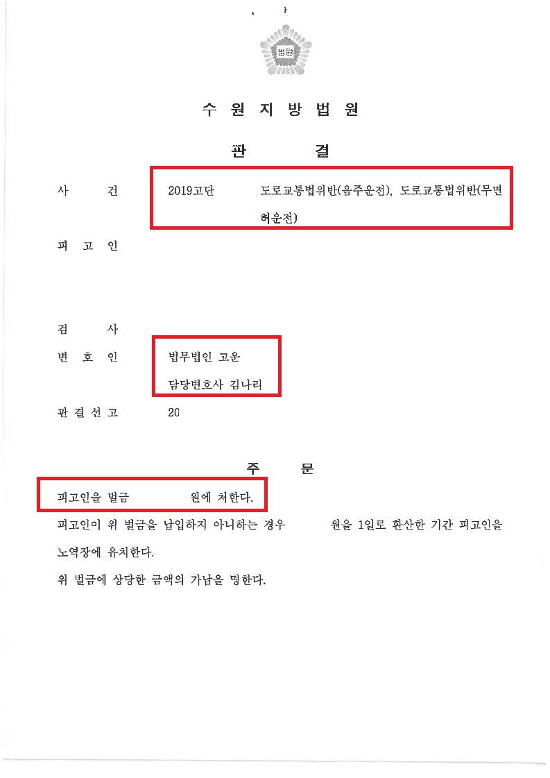재판부는 법무법인 고운의 주장을 받아들여 의뢰인에게 벌금형을 선고하였습니다. 실형을 피해 다시 가족의 곁으로 돌아갈 수 있게 되었다는 사실에 의뢰인은 크게 안심하였습니다.