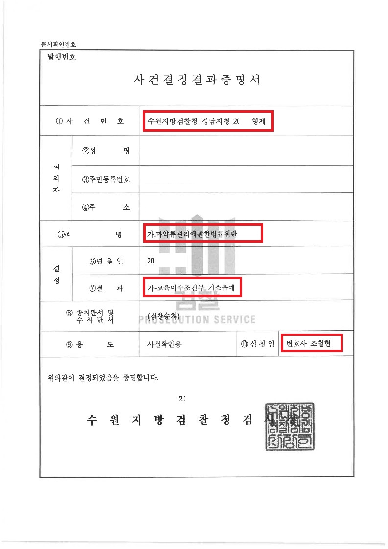 검찰은 법무법인 고운의 주장을 받아들여 의뢰인에게 기소유예 판결을 내렸습니다. 징역이나 벌금 등의 처벌 기록을 남기지 않을 수 있게 되었다는 사실에 의뢰인과 가족들은 매우 만족하였습니다.
