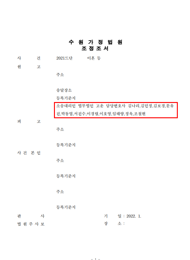 법무법인 고운은 조속히 이혼이 마무리되길 원하는 의뢰인의 의사에 따라, 재판 외에서 이혼 및 재산분할, 양육자 지정 등에 관한 구체적인 사항에 대하여 B씨 측과 원만히 합의를 진행하였고, 이혼과 관련하여 향후 분쟁의 소지가 없도록 조정안을 마련하였습니다.