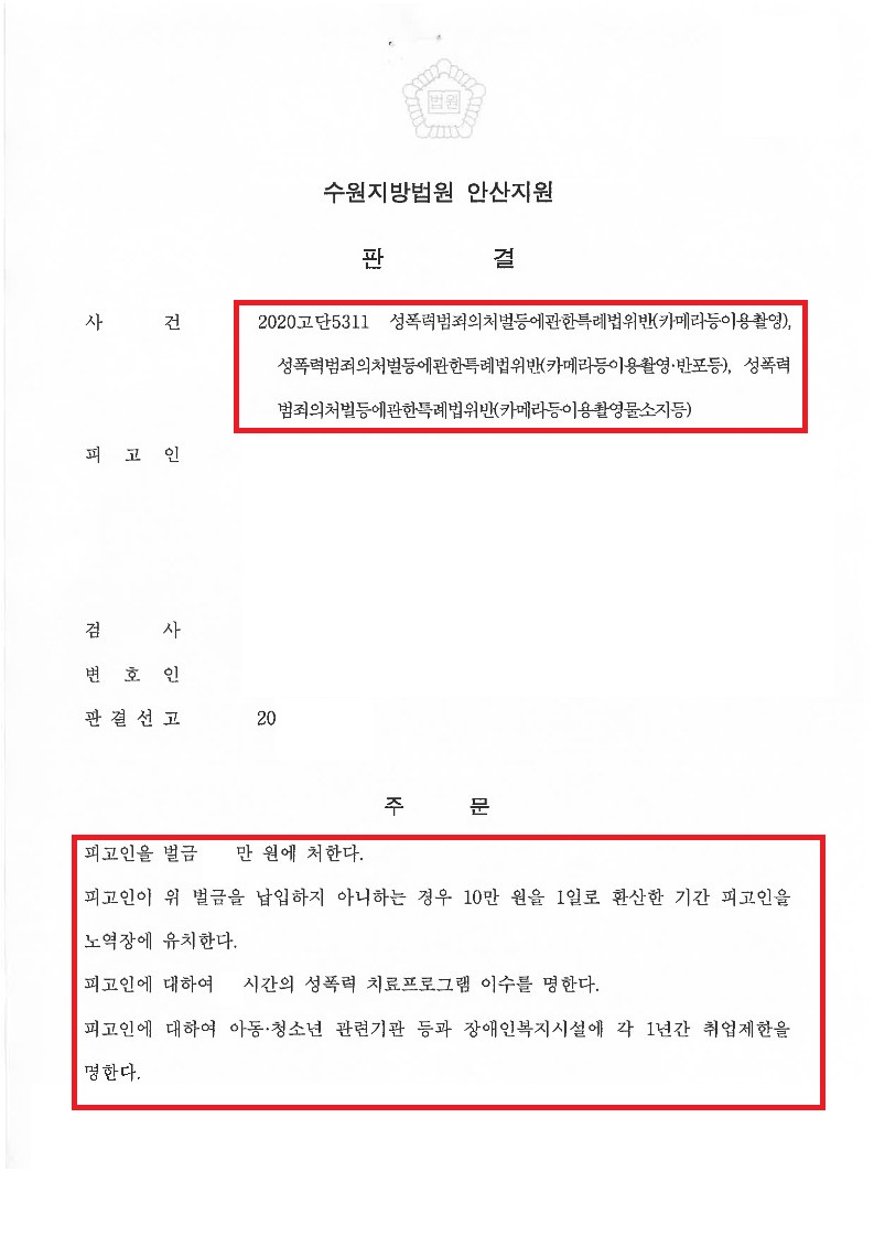 재판부는 법무법인 고운의 주장을 상당 부분 받아들여 형사처벌 뿐만 아니라 일정 시간의 교육 이수 및 취업제한 판결을 내렸습니다. 의뢰인은 본 사건으로 인해 정신적인 충격을 받아야 했지만, 상대방이 형사처벌을 받았고 그 판결을 기반으로 상대방에 대해 위자료 청구 소송이 가능해졌다는 사실에 만족하였습니다.