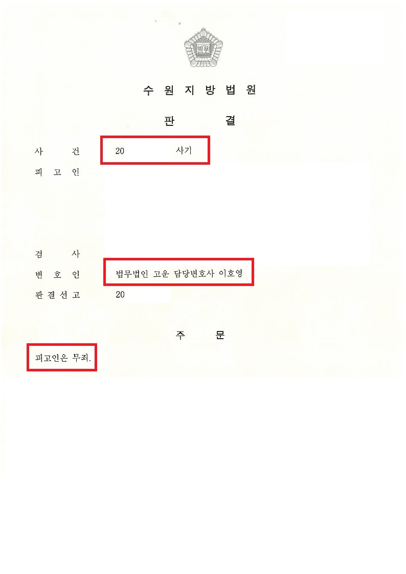 재판부는 법무법인 고운의 주장을 받아들여 의뢰인에게 무죄 판결을 내렸습니다. 어려운 상황에서 억울하게 사기죄 혐의까지 받을 뻔했지만, 결국 무죄 판결을 받아낸 것에 매우 만족하셨습니다.