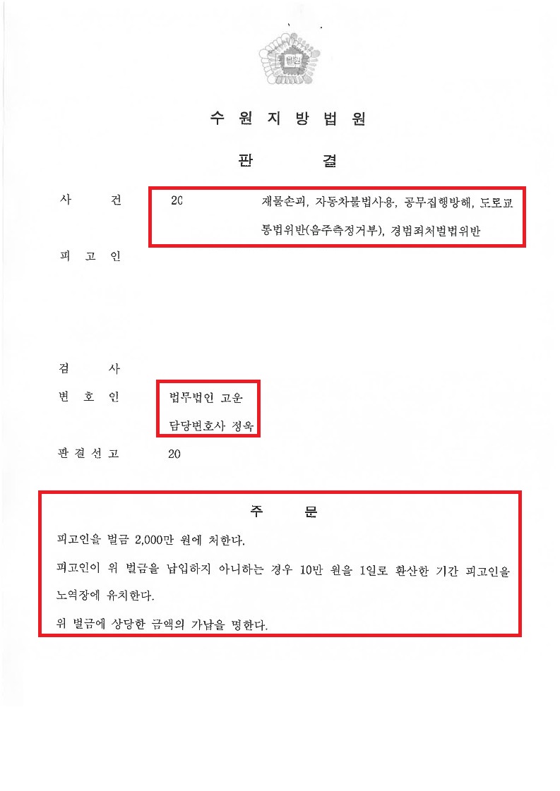 재판부는 법무법인 고운의 주장을 받아들여 의뢰인에게 실형이 아닌 벌금형 판결을 내렸습니다. 의뢰인은 우려했던 실형을 받지 않게 된 결과에 대해 매우 만족하였습니다.