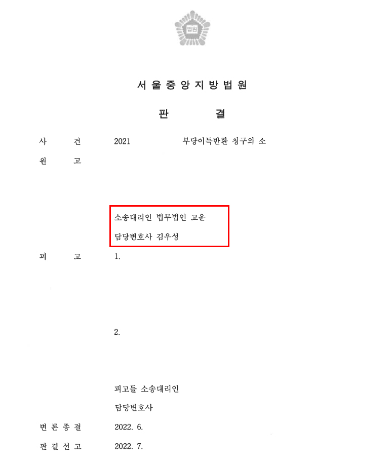 그러나 A씨는 사정상 계약을 유지할 수 없게 되어 계약 해제의 의사를 밝혔고 계약 해제에 따른 위약금은 지불한 계약금 3,000만 원의 10%인 300만 원이므로 2,700만원을 돌려달라고 주장하였습니다. 그러나 B회사는 계약금은 1억 5,000만 원이기 때문에 계약을 해제하려면 오히려 1억 2,000만 원을 추가로 지급받아야 한다고 주장하였습니다. 결국 A씨는 B회사를 상대로 부당이득반환 청구 소송을 진행하기 위해 법무법인 고운을 찾아주셨습니다.