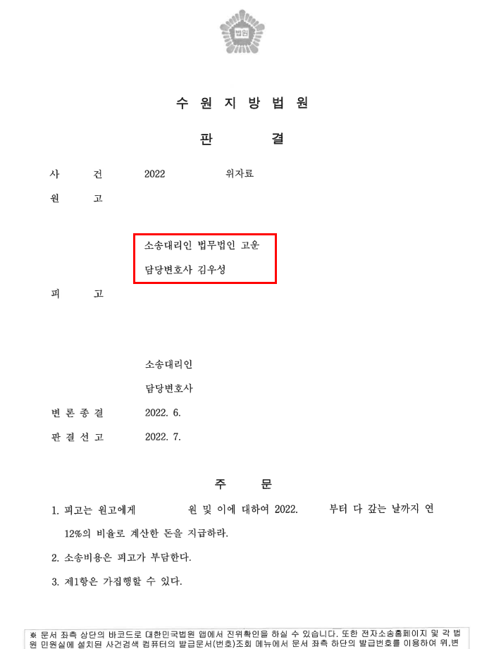 결국 재판부는 법무법인 고운의 주장을 받아들여 A씨의 위자료 청구를 인용하였습니다.