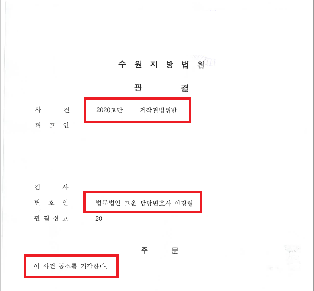 법무법인 고운은 먼저 A가 불법적인 의도를 가지고 자신의 영리를 위해서 저작권 위반행위를 한 것은 결코 아니라는 점을 주장했습니다. 그리고 A가 의도치 않았더라도 자신이 불법행위를 하였다는 것을 인정하고 깊이 반성하고 있는 점, 이전에는 어떠한 전과도 없는 점 등을 재판부에 주장하였고 피해자에게 사과의 의사와 함께 전달하였습니다. 결국 A는 피해자와 재판 과정에서 합의에 이르는데 성공하였습니다.