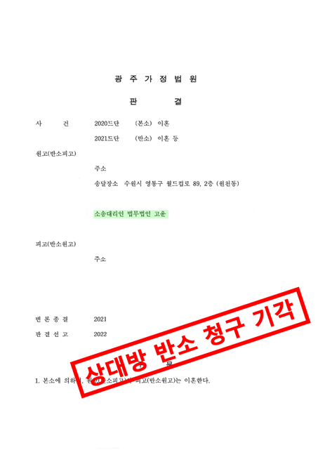 법무법인 고운은 A를 대리하여 이혼 및 위자료 청구를 하였으나,