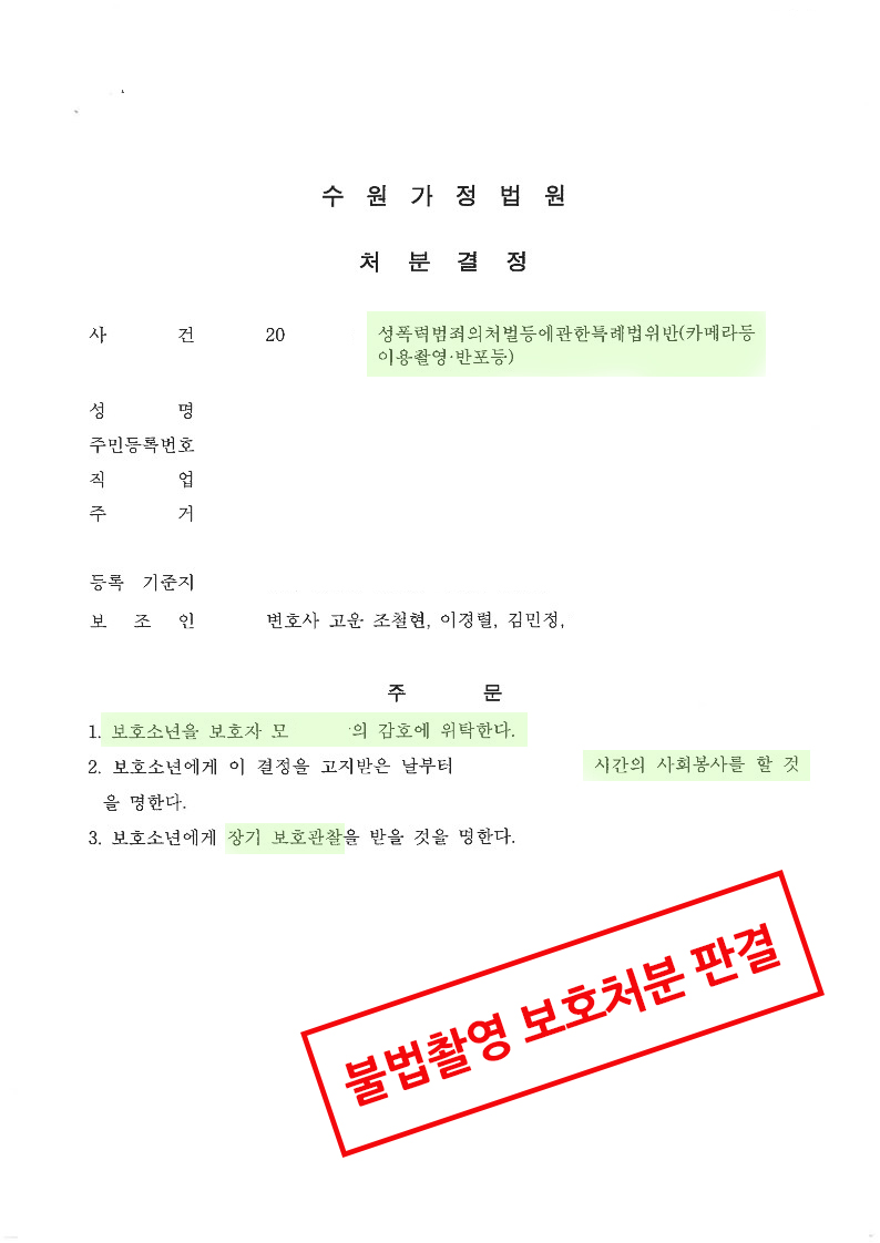 재판부는 형사처벌이 아닌 보호처분 5호를 내렸습니다. A와 부모님들은 처벌 위기에서 벗어나게 되었다는 사실에 매우 만족하였습니다.