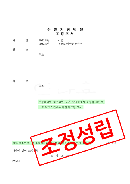 결국 조정절차를 통하여 A씨는 B씨로부터 약 50%의 재산분할금을 지급받게 되었으며,