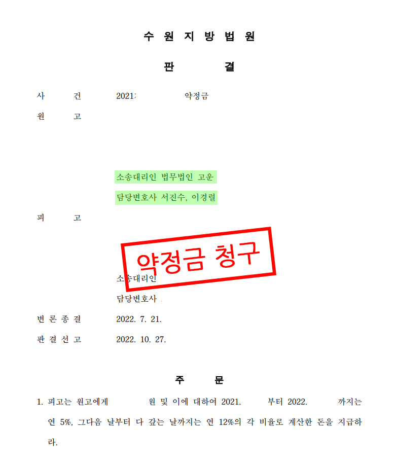 법무법인 고운은 C가 약정금 지급을 거부하고 있고