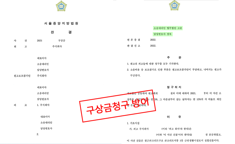 그리고 C사는 A와 시공사측에 책임을 묻기 위하여 구상금 청구를 하였고,