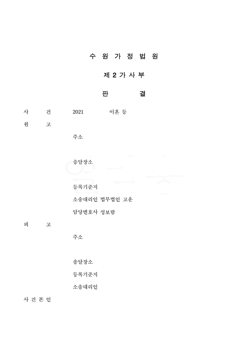이혼소송 I 상대방 귀책사유 인정으로 위자료·재산분할·양육비 모두 확보한 이혼 사례