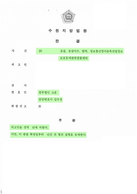 재판부는 고액의 피해가 발생한 공갈 등 다수의 범죄 협의가 적용된 사건이지만,