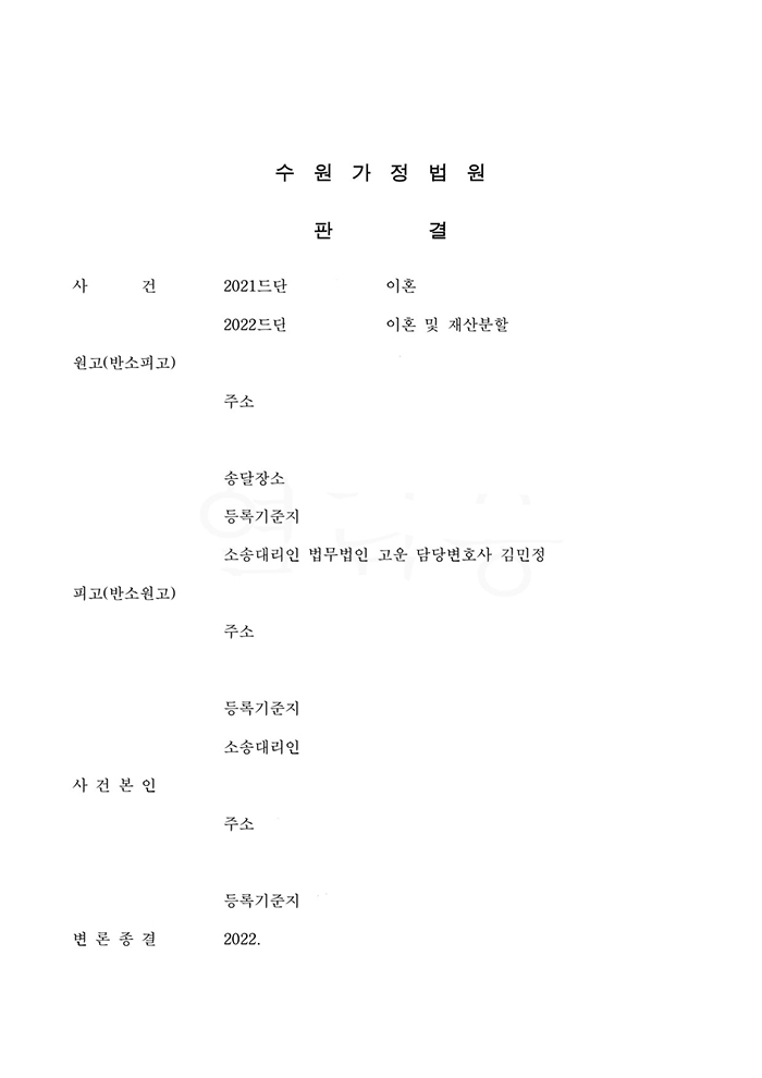 법무법인 고운은 A씨를 대리하여 이혼을 청구하였으나,