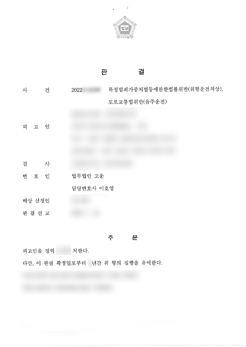 결국 특정범죄 가중처벌 등에 관한 법률 위반으로 조사를 받게 된 A는 저희 법무법인 고운을 찾아주셨습니다.