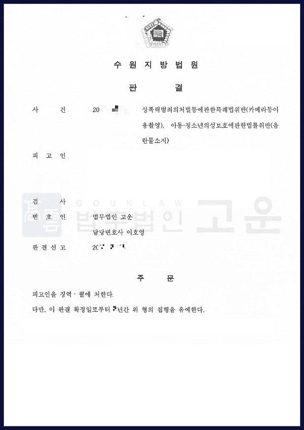 법무법인 고운은 먼저 A가 과거 불법촬영이라는 잘못을 저지른 것은 사실이지만, 충동적인 행위였고 그런 촬영물을 저장해두었다는 사실조차 잊고 살았다는 사실을 주장했습니다. 저장된 음란물에 대해서도 단순히 교복을 입고 있다고 해서 아동청소년 음란물은 절대 아니며, 디지털 포렌식을 통해 구제적으로 확인해 본 결과 A가 단순히 음란물을 검색하다가 교복을 입은 성인 배우의 사진을 다운받은 것에 불과하다는 사실을 재판부에 강력히 주장하였습니다.