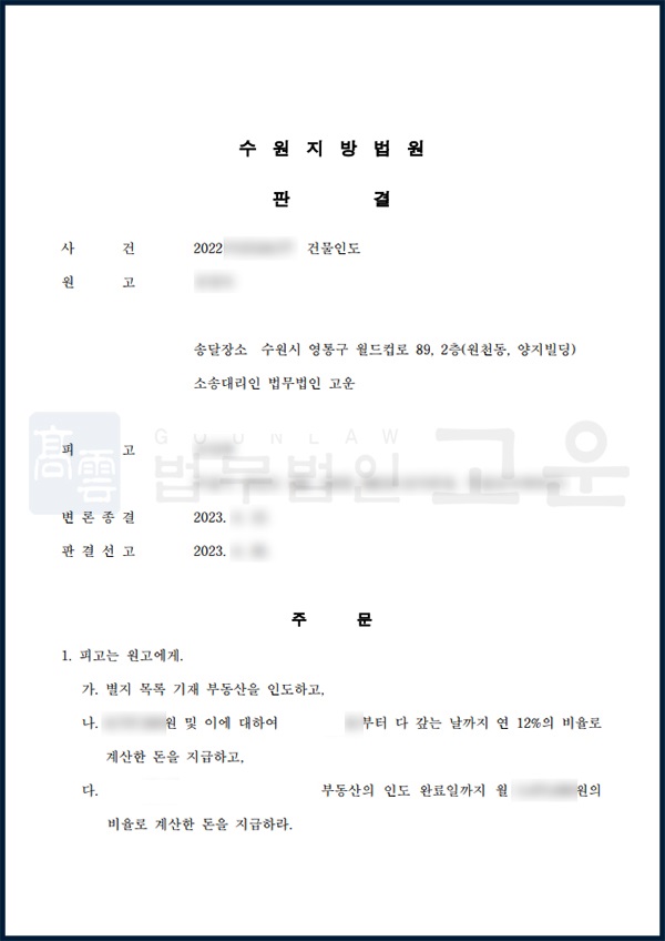 재판부는 법무법인 고운의 주장을 받아들였고, B는 A에게 미지급한 차임을 모두 지급하고 해당 건물을 인도하라는 판결을 내렸습니다.