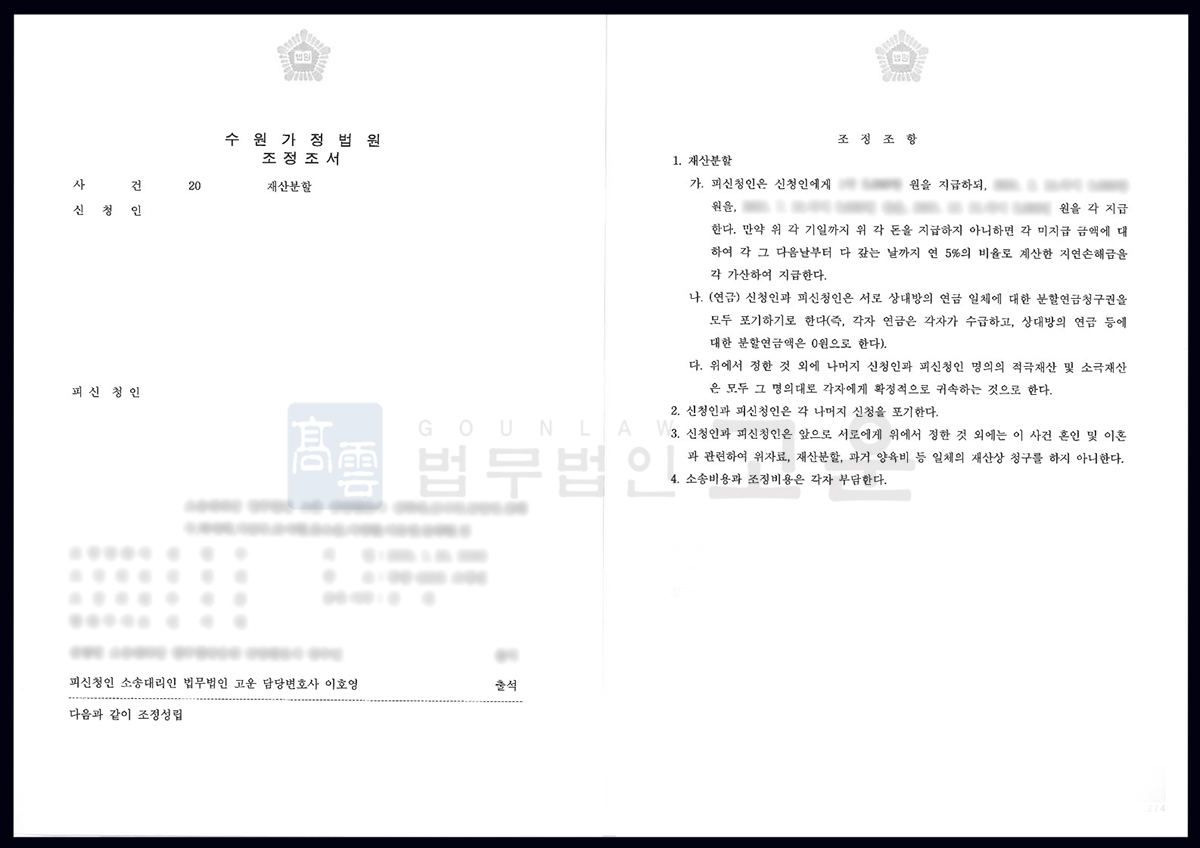 당시에는 채무변제 등으로 이유로 분할할 재산이 없어 재산분할을 하지 않은 것이라는 점을 입증하였습니다.