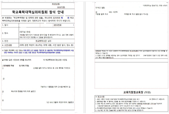 [학교폭력대책심의위원희 참석 안내문]