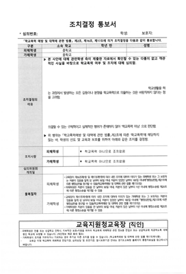 특히 가해학생이 나이가 어리거나, 처음 학폭이 진행되는 경우 대부분 3호 이하의 경미한 처분을 받는 경우들이 많다고 오해하시는 부모님들이 많고, 학폭 사안으로 일단 접수가 되면 증거가 불충분하더라도 무조건 1호 처분(서면사과)은 나온다는 생각을 하는 부모님들도 많습니다.