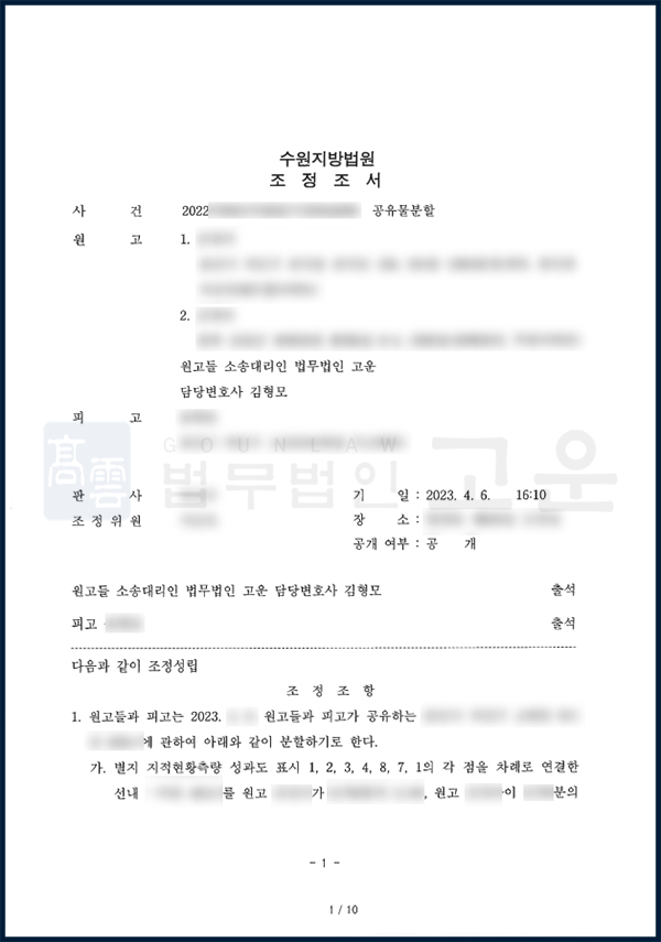 전문성, 소통, 친절함까지 모두 만족스러웠습니다. 주변에 공유물 문제로 고민하는 지인이 있다면 자신 있게 추천드릴 수 있을 만큼 좋은 경험이었습니다.