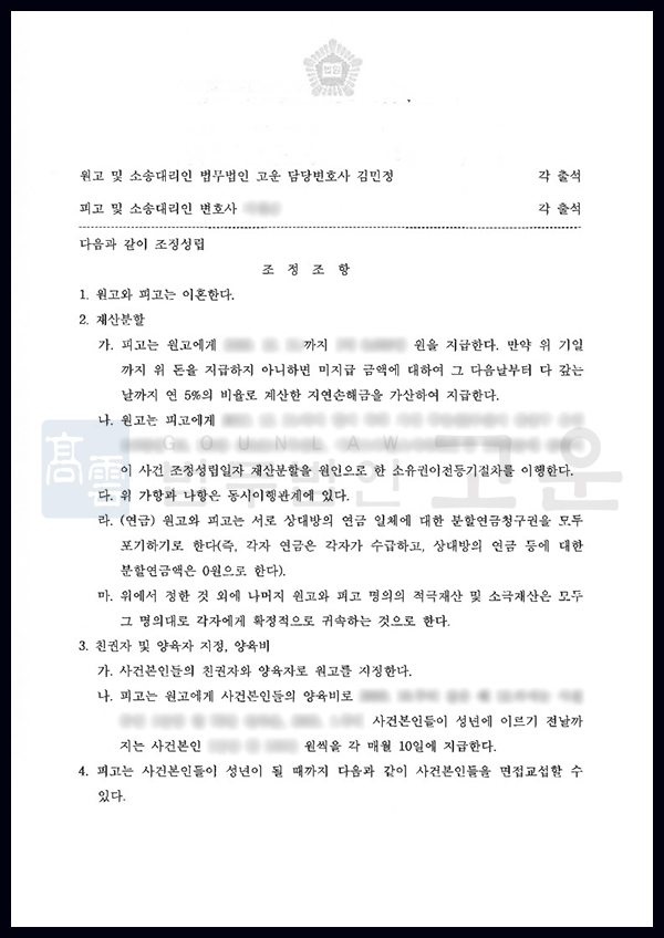 이혼청구 I 조정이혼 절차를 통해 의뢰인이 최초로 요구한 재산분할금보다 훨씬 큰 금액을 인정받고, 약 5개월 만에 신속하게 이혼을 성립시킨 사례