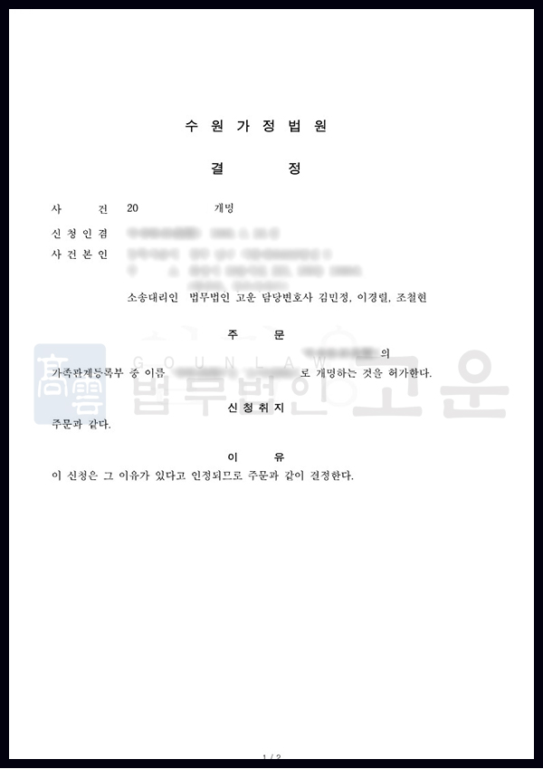 개명신청 I 두 번째 개명신청이 기각된 이후, 법무법인 고운을 통해 재개명 신청을 진행하여 최종적으로 허가를 받아낸 사례