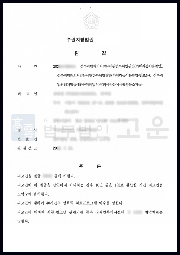 재판부는 법무법인 고운의 주장을 받아들여 B를 형사처벌 하였으며, 이로 인해 B 성범죄 전과자가 되었습니다. A는 B가 합당한 형사처벌을 받았다는 사실에 마음에 위안을 얻었으며, B에 대하여 위자료 까지 청구할 수 있게 되었다는 사실에 만족하였습니다.