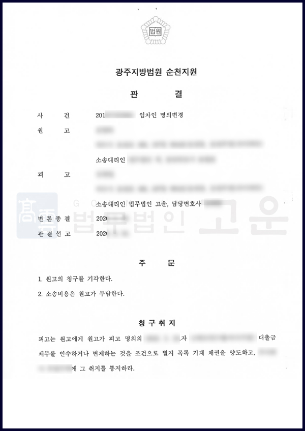 그런데 A씨와 B씨의 주택임차권에 대한 분쟁이 생기면서 B씨는 임차인 명의변경을 요구하였고 A씨는 이를 거절하였습니다. 이로 인해 B씨는 A씨를 상대로 임차권 명의변경 소송을 하였고 A씨는 대응하고자 법무법인 고운을 찾아주셨습니다.