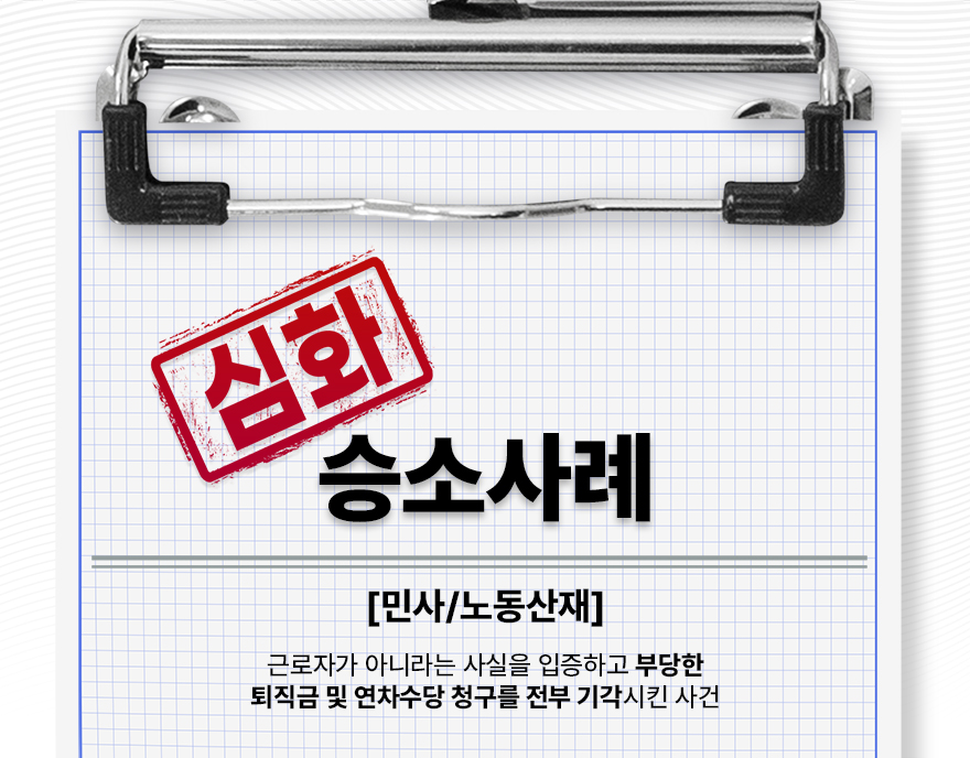 이 사건은 표면적으로는 퇴직금 및 연차수당 청구 소송처럼 보였지만, 실제로는 10년 가까운 기간 동안 얽혀 있던 외주 관계의 실질을 법리적으로 다시 해석해야 했던 다소 복잡한 사건이었습니다.