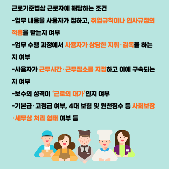 -기본급·고정급 여부, 4대 보험 및 원천징수 등 사회보장·세무상 처리 형태 여부 등