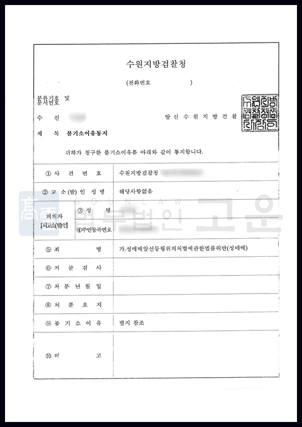 그 결과 검찰은 법무법인 고운의 주장을 받아들여 A씨에게 교육이수조건부 기소유예 처분을 내렸습니다. 미성년자를 대상으로 한 성매매 혐의가 인정될 경우 그 처벌 수위가 매우 높아질 수 있었으나, 고운의 주장이 받아들여져 A씨가 고의적으로 미성년자 대상 성매매를 한 것이 아니란 사실이 인정되어 처벌을 크게 줄일 수 있었고, 이에 A씨는 매우 만족하였습니다.