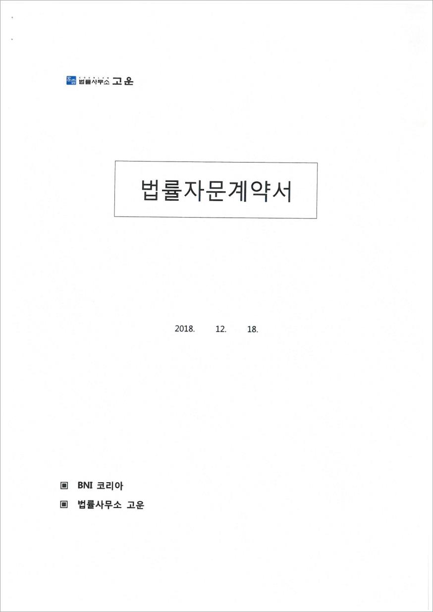 법률사무소 고운은 비지니스 네트워킹 단체인 BNI Korea와 법률자문계약을 체결하였습니다.