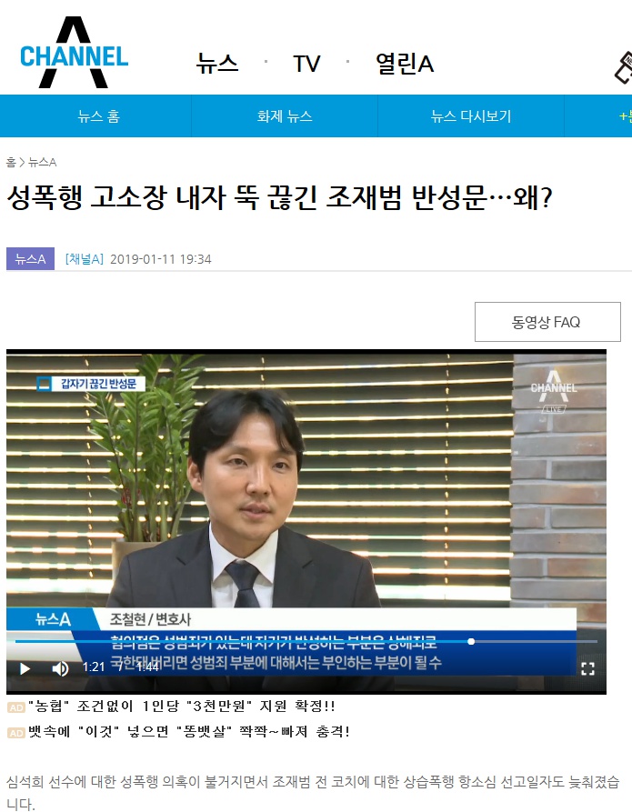 * 조철현변호사님, 채널A종합뉴스와 조재범코치에 대한 형사사건 인터뷰