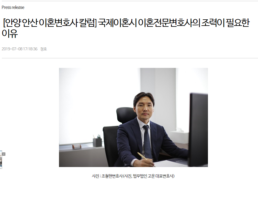 * 조철현변호사님, “ 국제이혼시 이혼전문변호사의 조력이 필요한 이유” 로 언론보도