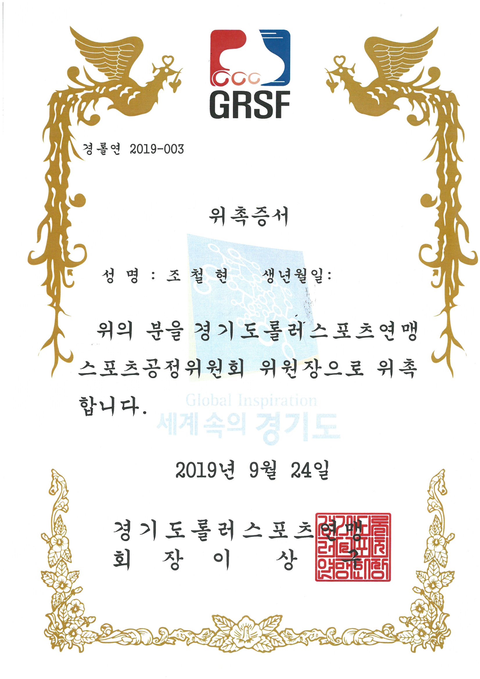 * 조철현대표변호사님, 경기도롤러스포츠연맹 스포츠공정위원회 위원장으로 위촉