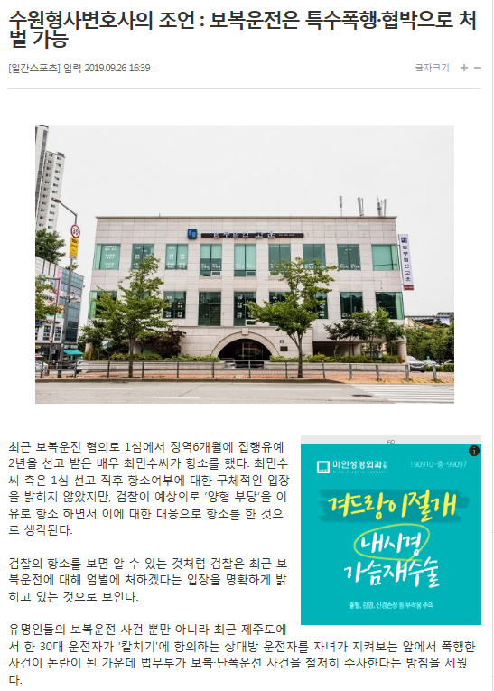 법무법인 고운의 이경렬변호사님이 일간스포츠에 “수원형사변호사의 조언 : 보복운전은 특수폭행·협박으로 처벌 가능”으로 게재되었습니다.