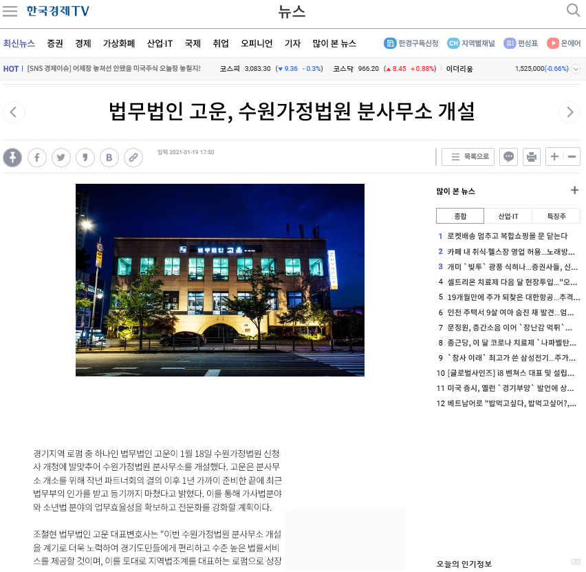 * “법무법인 고운, 수원가정법원 분사무소 개설”로 언론보도