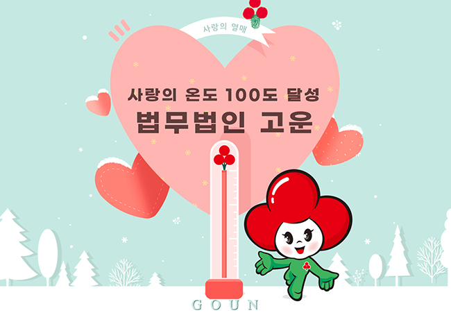 법무법인 고운은 앞으로도 각종 사회단체를 통한 후원 및 자선행사에 참여함으로써, 지역사회와 국가의 건강한 미래를 위한 기업의 사회적 책임을 다하겠습니다. 감사합니다.