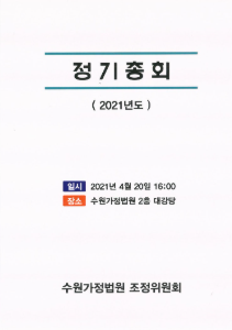 법무법인 고운의 김민정변호사님과 서진수변호사님이 2021.4.20. 수원가정법원 조정위원회 정기총회에 참석하였습니다.