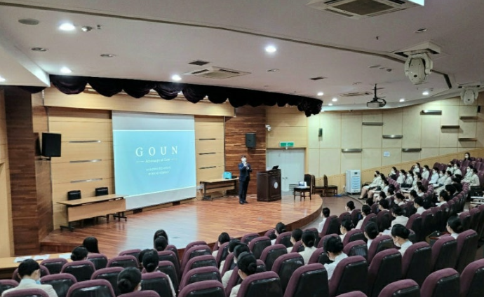 고운의 이경렬변호사님은 재학생들에게 변호사 직업에 대한 소개와 업무, 관련분야 취업을 위한 준비 및 노력방향 등에 대하여 설명해주셨습니다. 졸업생인 이민주주임님은 후배들에게 로펌비서에 대한 직업소개와 법무법인 고운 소개를 하였고, 이후 재학생들과 자유롭게 질의응답을 하는 등 소중한 시간을 갖게 되었습니다.