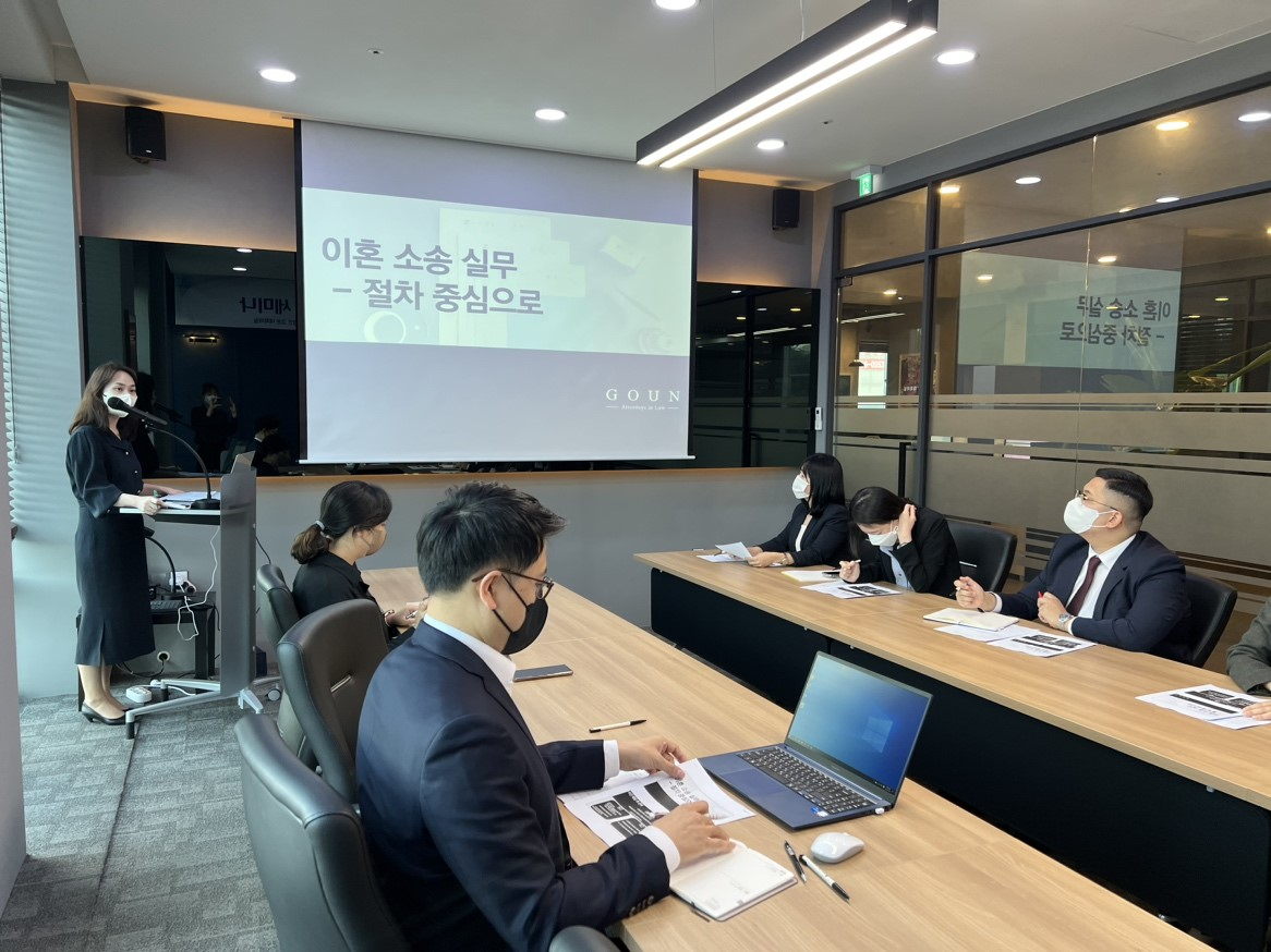 2022년 10월 7일 금요일 법무법인 고운 본사 2층 대회의실에서 가사전담팀 주관 이혼 · 재산분할 실무 세미나가 진행되었습니다.