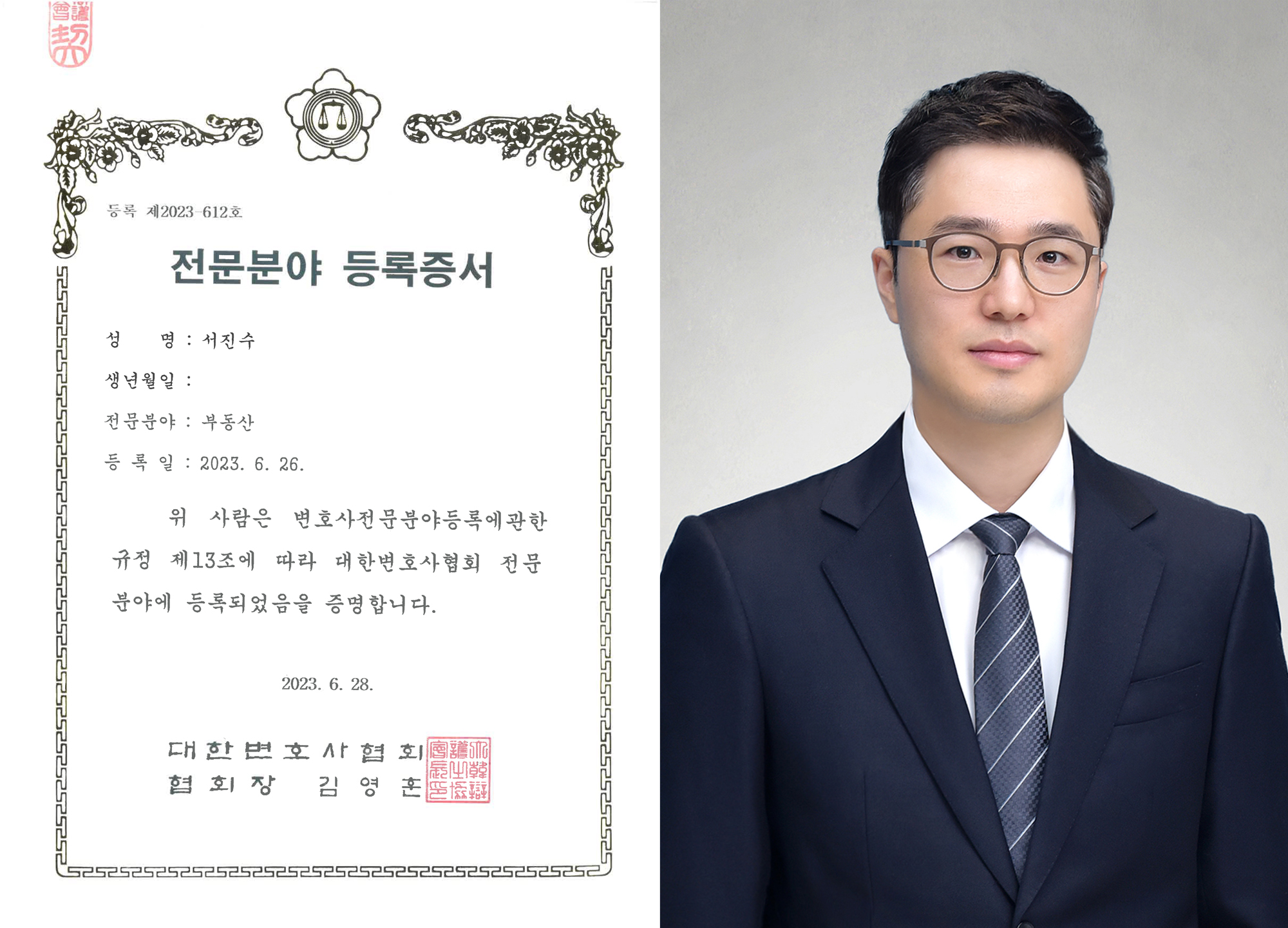 * 서진수 변호사, 대한변호사협회 부동산전문분야 등록