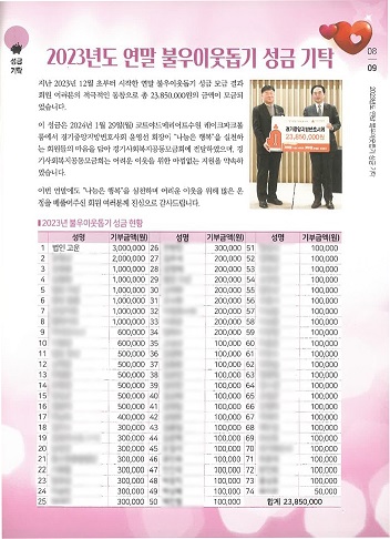 ‘2023년 연말 불우이웃돕기 성금 모금’에 300만 원을 기부했습니다.