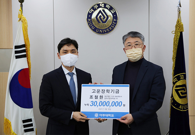 아주대 법학전문대학교 학생들에게 시상하는 고운장학금 설립하여 매년 500만원씩 최우등학생들에게 고운상 수상과 함께 장학금을 전달하고 있습니다.