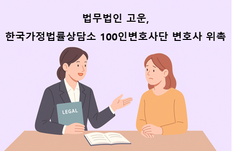 법무법인 고운은 한국가정법률상담소의 100인변호사단에 공식 위촉되며 가정법률 분야에서 공익적 역할을 수행하게 되었습니다.