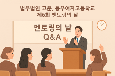 법무법인 고운은 동우여자고등학교에서 개최된 제6회 멘토링의 날 행사에 초청되어 학생들과 질의응답 시간을 진행했습니다.