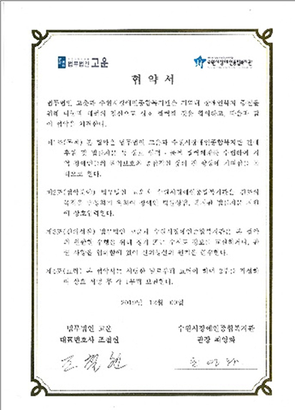1. 수원시장애인종합복지관과의 협약 및 지속적인 협력