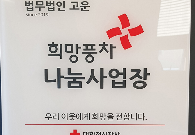 법무법인 고운은 대학적십자사에서 실시하는 희망풍차 나눔 명패달기 캠페인에 참여하였습니다.